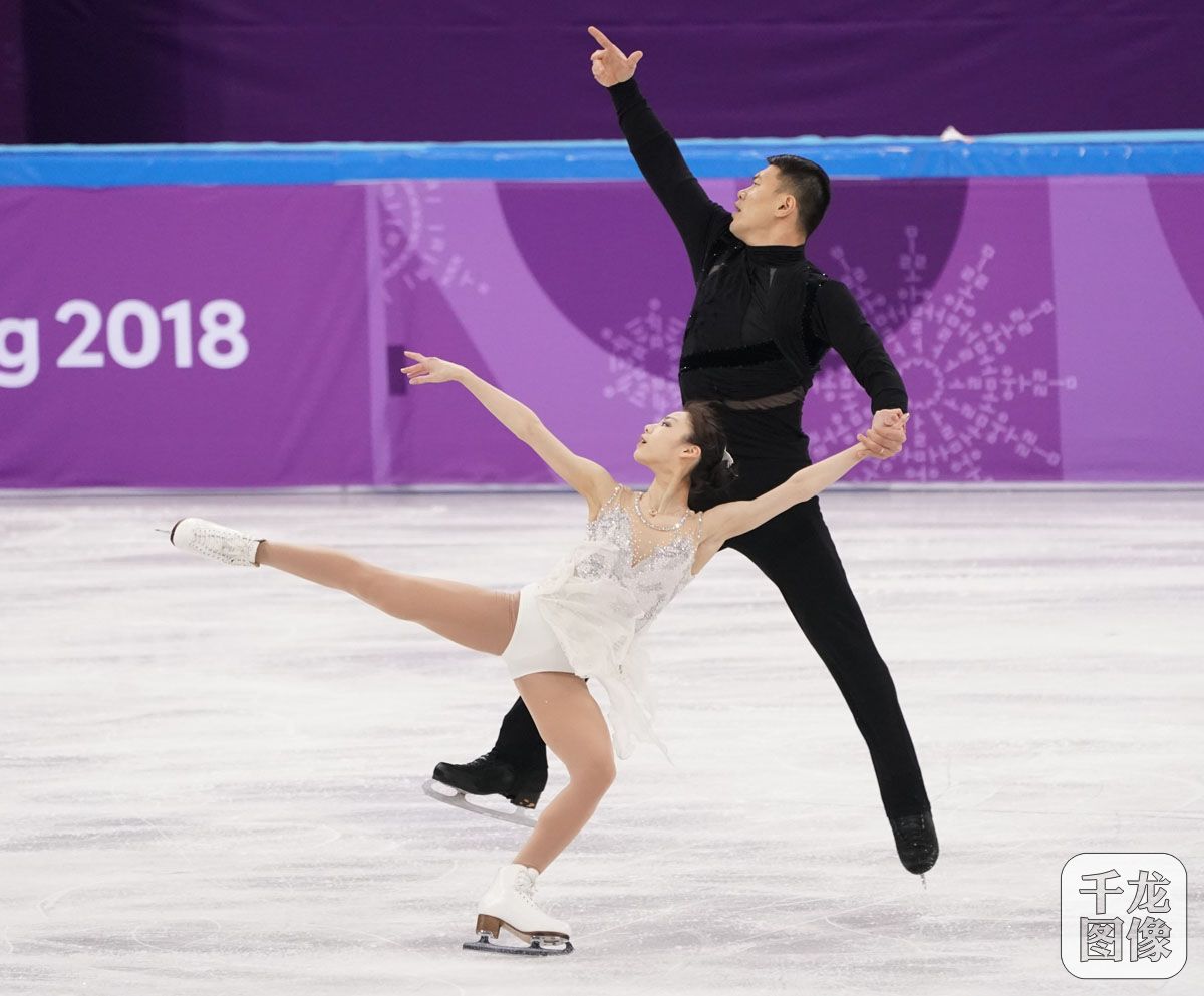 2月14日, 2018年平昌冬奥会在江陵冰上运动场展开第五个比赛日的较量。中国组合彭程/金杨、于小雨/张昊亮相赛场。图为于小雨/张昊在比赛中。千龙网特约记者 萧峰摄