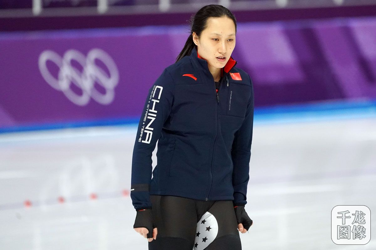2月14日,2018年平昌冬奥会速度滑冰比赛在江陵速滑馆进入到第五日争夺。女子1000米,中国选手张虹以1分15秒67获得第11名,于静和田芮宁分获第17和第21名。图为张虹在比赛中。千龙网特约记者 萧峰摄
