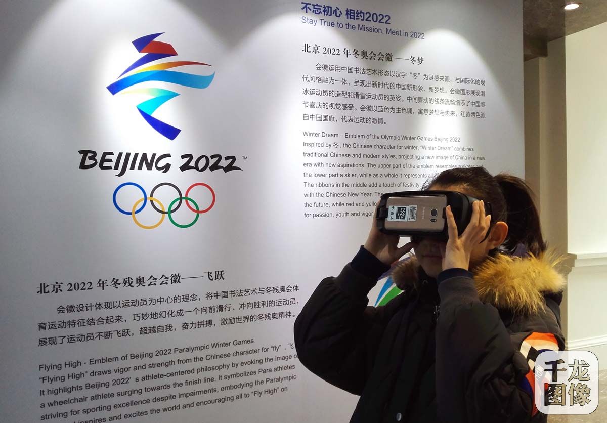 2月14日,“不忘初心相约2022”冬季奥林匹克体育文化展启动仪式在大栅栏历史文化保护区“北京坊”举行。图为游客体验虚拟场馆。千龙网记者 戚连民摄