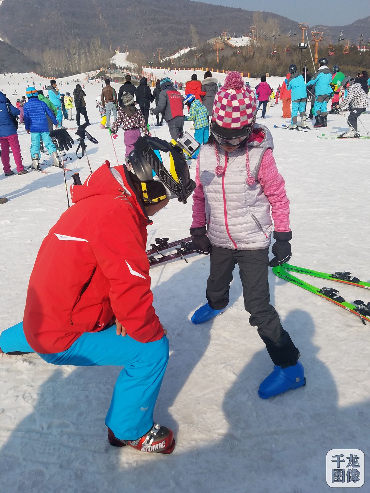 春节假期,不少北京市民来到滑雪场感受浓浓年味,体验冰雪运动的乐趣。随着冰雪运动的普及,春节滑雪已经成为北京市民一项必不可少的节日娱乐大餐。图为2月18日(大年初三),一对父女在军都山滑雪场体验滑雪乐趣。身为滑雪高手的父亲正带着女儿做滑雪前的热身运动。千龙网发 道道摄