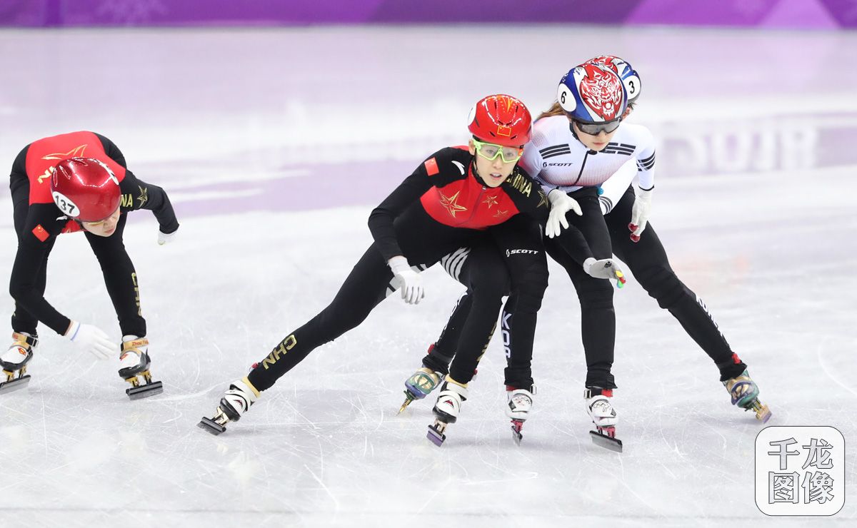2月20日,2018平昌冬奥会短道速滑项目展开第四比赛日的争夺。在女子3000米接力决赛中,第二个冲过终点线的中国队最终被判犯规,意大利队以4分15秒901获得银牌,在B组以4分03秒471打破世界纪录的荷兰队递补获得铜牌。图为本场比赛精彩瞬间。千龙网特约记者 萧峰摄