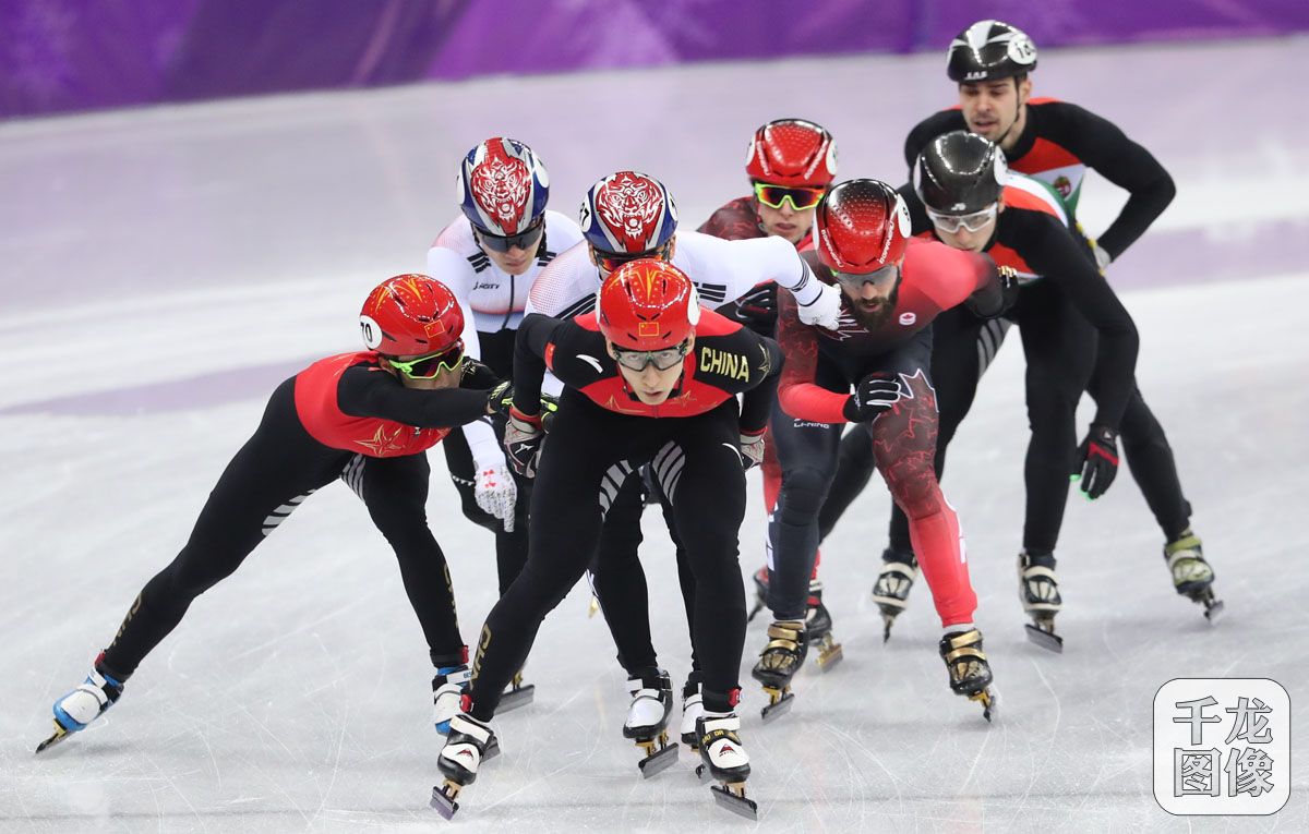2月22日,2018平昌冬奥会短道速滑举行男子5000米接力决赛,由武大靖、韩天宇、许宏志、陈德全组成的中国队以6分32秒035的成绩惜败匈牙利队屈居亚军。图为中国队在比赛中。千龙网特约记者 萧峰摄