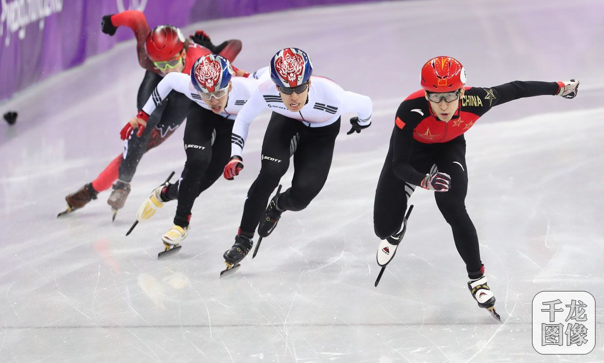 2月22日, 2018年平昌冬奥会短道速滑男子500米决赛,中国名将武大靖以39秒584夺得金牌,这也是中国代表团在本届冬奥会上的首金。图为武大靖在本届平昌冬奥会的精彩瞬间。千龙网特约记者 萧峰摄