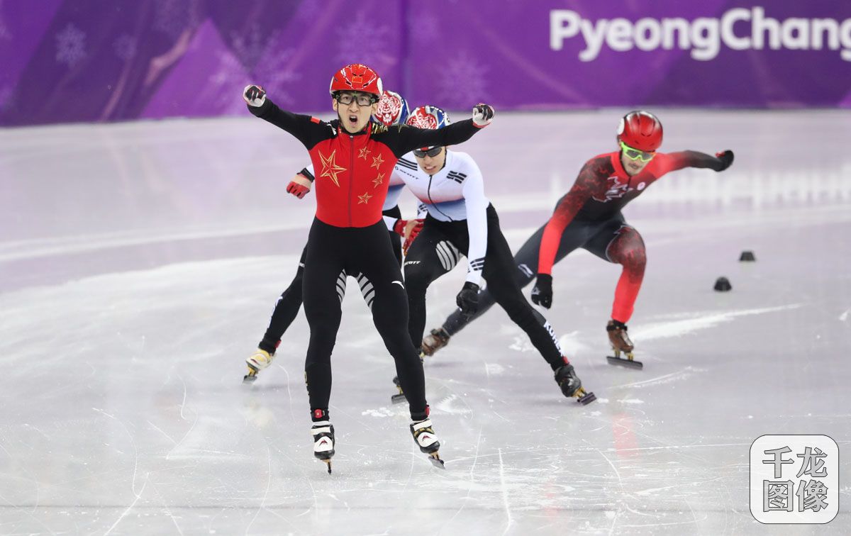 2月22日, 2018年平昌冬奥会短道速滑男子500米决赛,中国名将武大靖以39秒584夺得金牌,这也是中国代表团在本届冬奥会上的首金。图为武大靖在本届平昌冬奥会的精彩瞬间。千龙网特约记者 萧峰摄