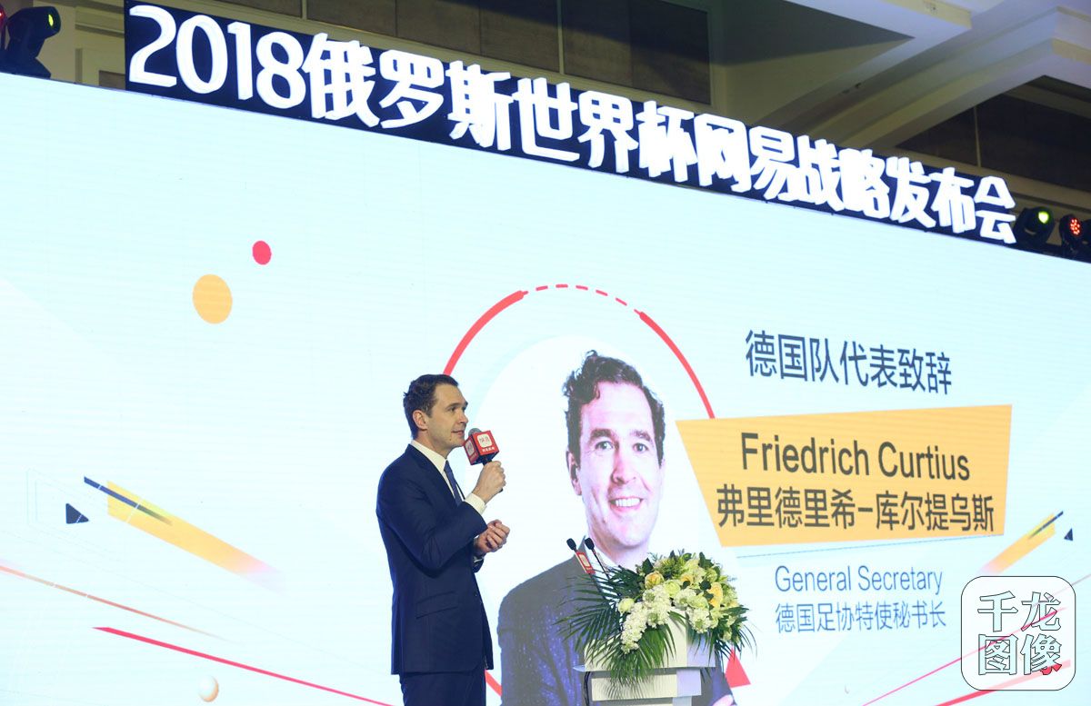 3月1日,网易传媒与德国足协独家签约成功,成为其世界杯的中国独家网络媒体合作伙伴。图为德国足协特使秘书长弗里德里希-库尔提乌斯。千龙网发 主办方供图