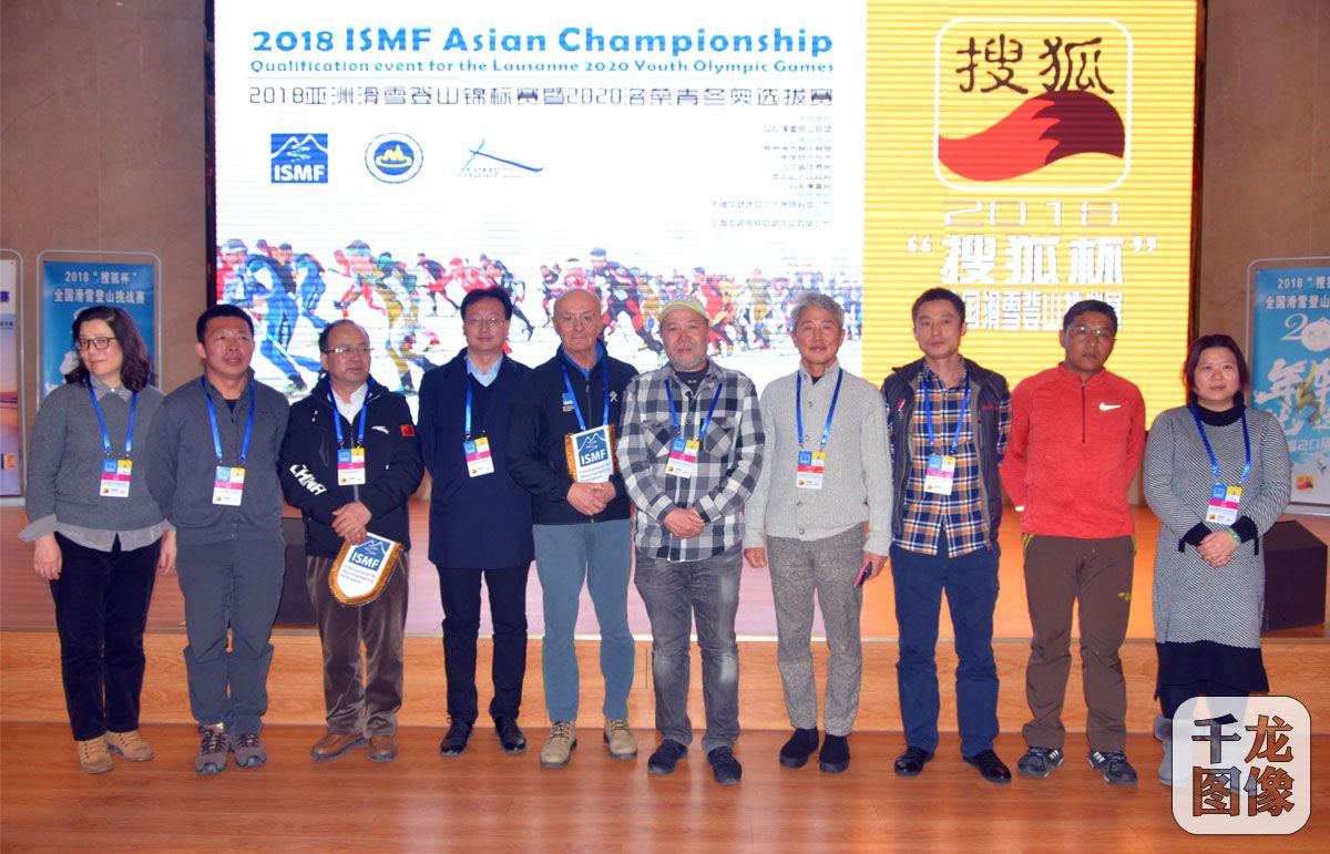 3月1日,2018亚洲滑雪登山锦标赛暨2020洛桑青冬奥选拔赛在河北张家口万龙滑雪场闭幕,来自中国滑雪登山青年队的次仁占堆和纪璐璐收获少年组男、女子比赛的桂冠,为中国赢得了直通洛桑的两个名额。图为与会嘉宾合影。千龙网发 中国登山协会供图