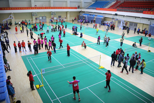 由北京市体育局、北京市体育总会主办,北京市羽毛球运动协会、房山区体育总会承办的“庆祝《北京市全民健身条例》颁布一周年羽毛球交流赛”,在北京农业职业技术学院体育馆举行。本次比赛共有东城、海淀、丰台、门头沟、房山、昌平、大兴、延庆区代表队、老年羽毛球队及部分羽毛球俱乐部选派的200余名羽毛球爱好者参加,其中年龄最大的78岁。现场进行了羽毛球交流比赛以及科学健身指导培训,由市羽毛球运动协会邀请的专家开展了羽毛球项目讲解和健身咨询,并向活动参与者发放了《北京市全民健身条例》读本,普及全民健身法律知识。