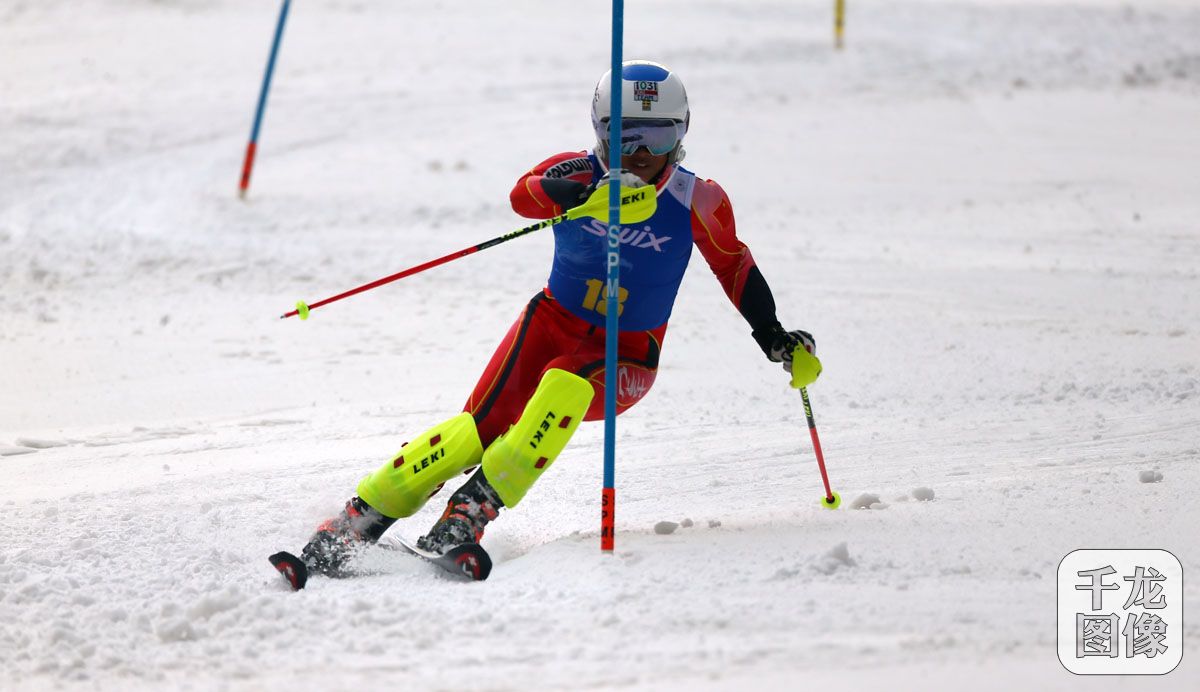 3月13日,2017-2018年度全国高山滑雪青少年锦标赛小回转比赛在黑龙江省解放军双峰八一雪场举行。王笛贝获得青年女子组冠军,易骁飏和唐诗洋分获少年男子组二三名,赵嘉宇获得少年女子组金牌。图为选手在比赛中。千龙网发 北京市滑雪协会供图