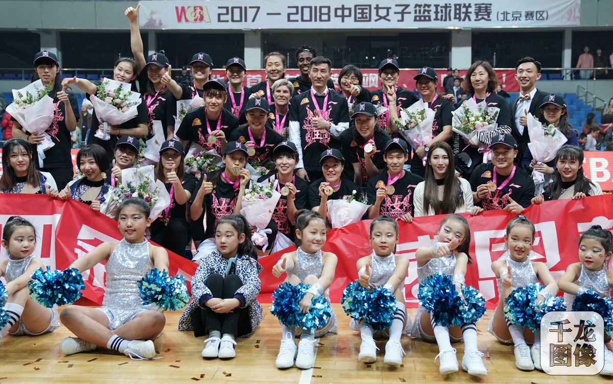 3月14日,2017-2018赛季WCBA总决赛进入第3场角逐,北京首钢女篮85-63战胜山西竹叶青女篮。以总比分3-0问鼎2018年WCBA总冠军,队成就WCBA三连冠伟业。图为赛后队员和主教练集体合影。千龙网发 胡科 萧峰摄