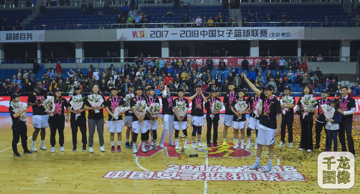 3月14日,2017-2018赛季WCBA总决赛进入第3场角逐,北京首钢女篮85-63战胜山西竹叶青女篮。以总比分3-0问鼎2018年WCBA总冠军,队成就WCBA三连冠伟业。图为赛后队员发表获胜感言。千龙网发 胡科 萧峰摄