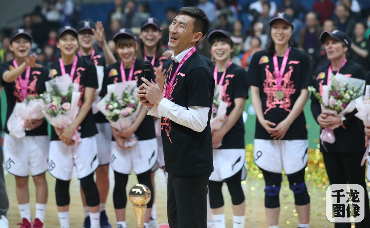 3月14日,2017-2018赛季WCBA总决赛进入第3场角逐,北京首钢女篮85-63战胜山西竹叶青女篮。以总比分3-0问鼎2018年WCBA总冠军,队成就WCBA三连冠伟业。图为主教练张云松讲话。千龙网发 胡科 萧峰摄