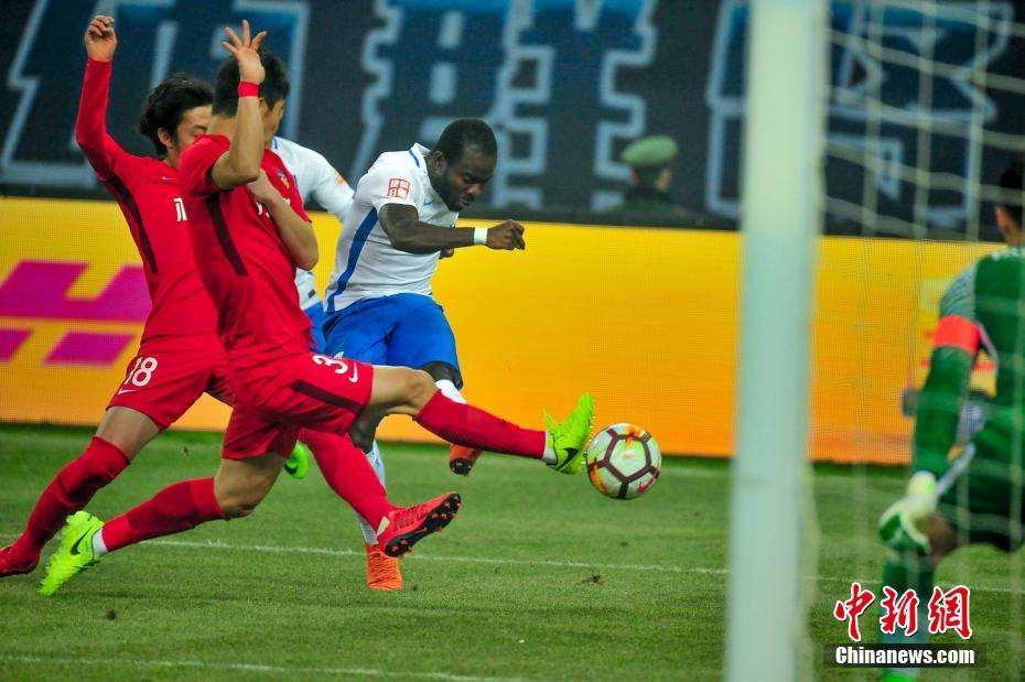 第3轮,天津泰达主场3比2击败天津权健。中新社记者 佟郁 摄