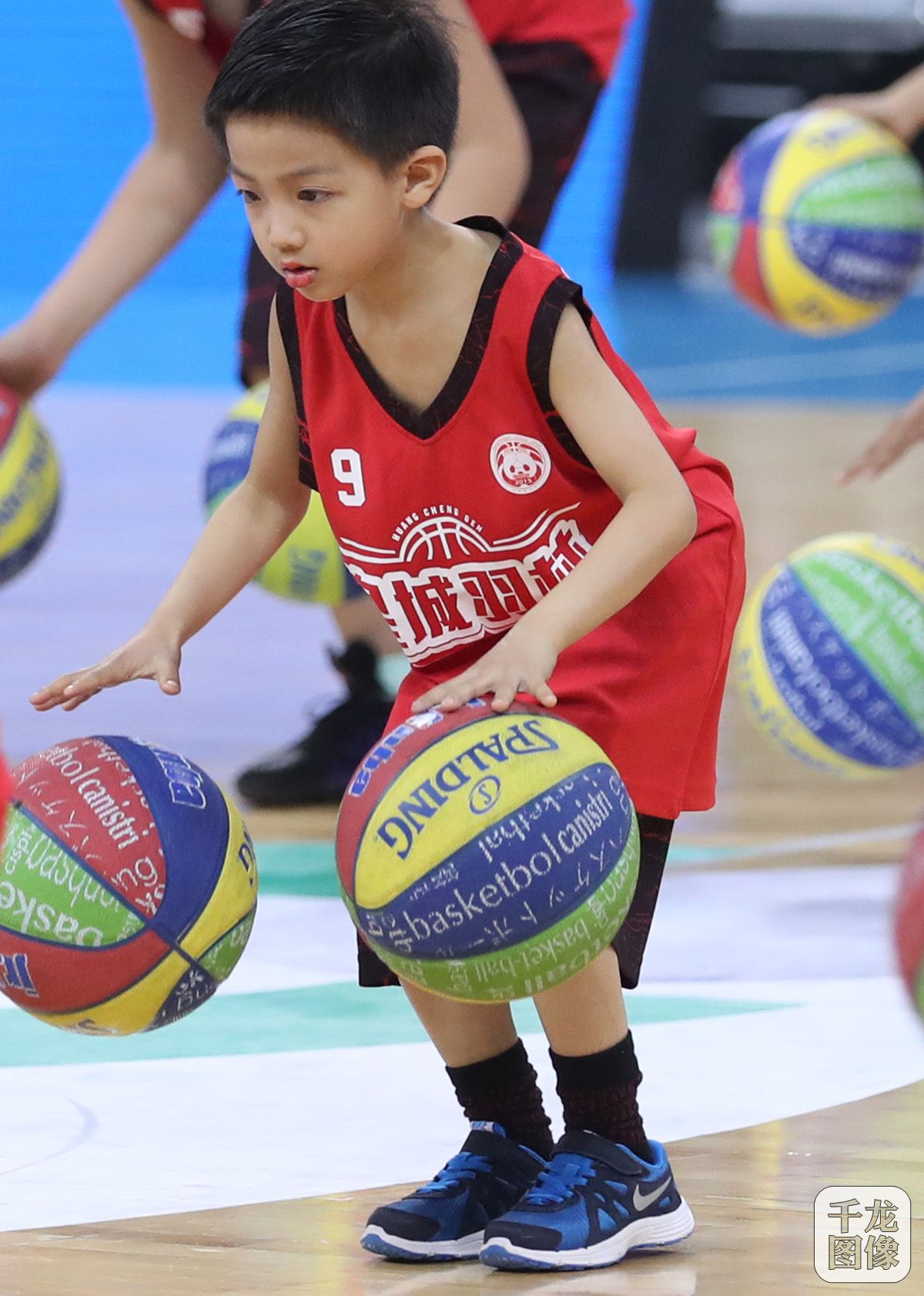 3月22日,2017-2018赛季CBA季后赛四分之一决赛京辽大战的第四场开战,最终首钢队主场72:75不敌辽宁,无缘四强。图为黄城根小学“皇城羽林”篮球队队员表演中。千龙网发 萧峰摄