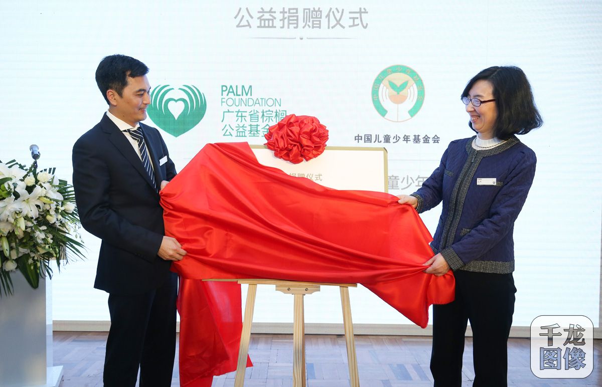 3月22日,英国西布朗足球俱乐部访问中国四十周年纪念活动暨签约中国儿童少年基金会公益捐助仪式在京举行。图为棕榈公益基金会理事长巫欲晓与中国儿童少年基金会副秘书长许旭共同启动了“成就你的足球梦”项目。千龙网发 主办方供图