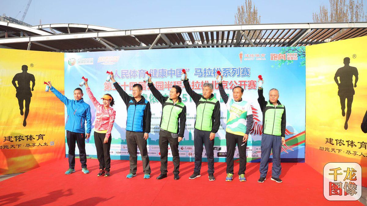 3月24日,第三十四届公园半程马拉松北京公开赛在奥林匹克森林公园起跑。图为与会嘉宾为比赛鸣笛发令。千龙网发 胡宗洋摄