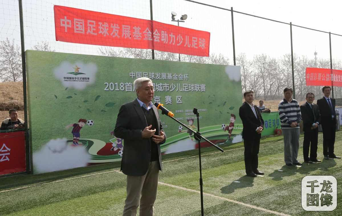 3月24日,“中国足球发展基金会杯”2018首届中国少儿足球联赛(北京赛区)在北京绿茵阳光足球俱乐部揭开战幕。图为全国体育运动学校联合会秘书长李贵成致辞。千龙网记者 戚连民摄