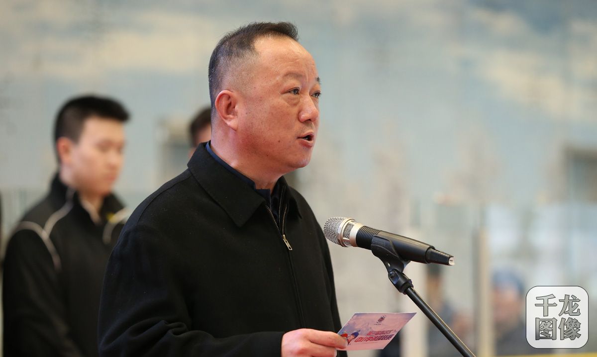 3月25日,海淀区第三届中小学冰球联赛开幕式在华润五彩冰酷运动中心举行,比赛将历时一个多月,600余名中小学参与角逐。图为海淀区体育局副局长白雪罡宣布比赛开始。千龙网记者 戚连民摄