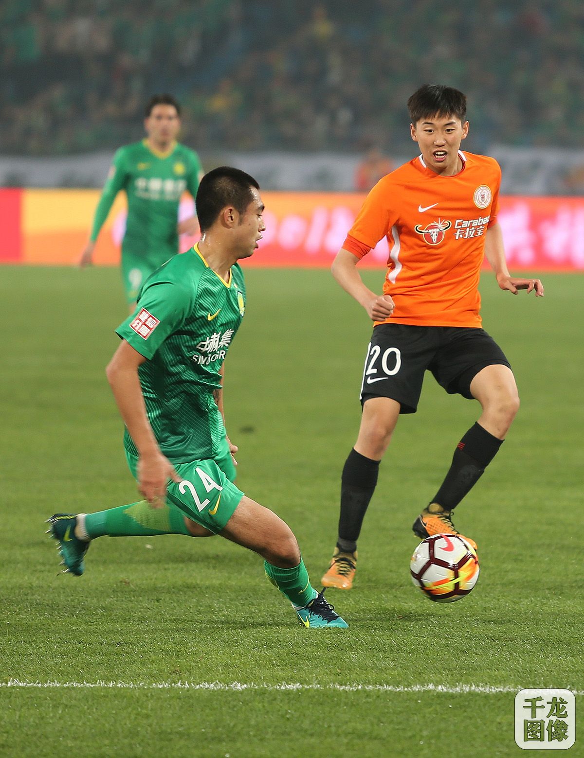 3月31日,2018赛季中超联赛第4轮,北京中赫国安主场迎战北京人和,上演首次京城德比。结果上半场索里亚诺主罚任意球建功,下半场于洋、比埃拉先后破门,于大宝点球再下一城,最终北京中赫国安在主场4比0战胜北京人和。图为本场比赛精彩瞬间。千龙网记者 戚连民摄
