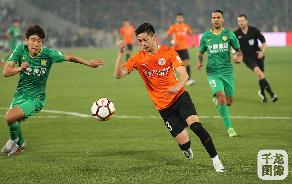 3月31日,2018赛季中超联赛第4轮,北京中赫国安主场迎战北京人和,上演首次京城德比。结果上半场索里亚诺主罚任意球建功,下半场于洋、比埃拉先后破门,于大宝点球再下一城,最终北京中赫国安在主场4比0战胜北京人和。图为本场比赛精彩瞬间。千龙网记者 戚连民摄