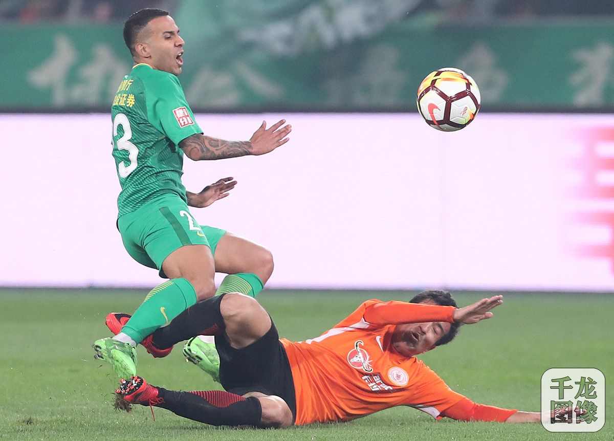 3月31日,2018赛季中超联赛第4轮,北京中赫国安主场迎战北京人和,上演首次京城德比。结果上半场索里亚诺主罚任意球建功,下半场于洋、比埃拉先后破门,于大宝点球再下一城,最终北京中赫国安在主场4比0战胜北京人和。图为本场比赛精彩瞬间。千龙网记者 戚连民摄