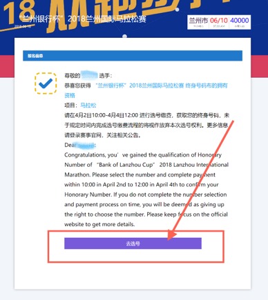 需要特别提请的是,原有终身号码拥有者一经选取将直接更换原有终身号码并一直沿用至每场兰州国际马拉松赛,若勾选“服从组委会安排”或不进行选号环节,将自动沿用跑者原有终身号码。