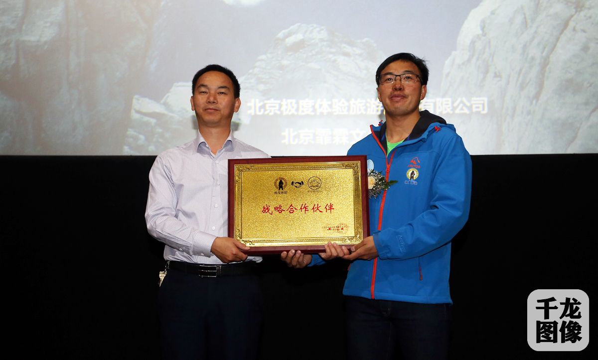 4月7日,以“奥运有你有我,前行贵在坚持”为主题的北京奥运珠峰火炬手十周年系列纪念活动4月7日在北京CBD万达影城举行。图为北京极度体验与腾冲旅游中心成为“战略合作伙伴”的授牌仪式。千龙网记者 戚连民摄