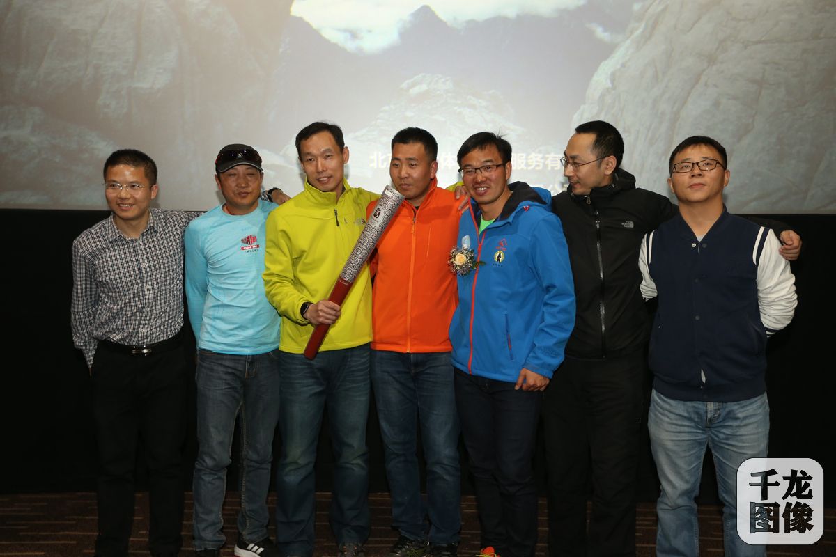 4月7日,以“奥运有你有我,前行贵在坚持”为主题的北京奥运珠峰火炬手十周年系列纪念活动4月7日在北京CBD万达影城举行。图为当年参与珠峰圣火传递的李富庆、袁复栋、苏兮、龚海宁、梁奕世、王仁智一并出席本次活动,在现场表达了奥运珠峰火炬手十周年纪念活动的祝福。千龙网记者 戚连民摄