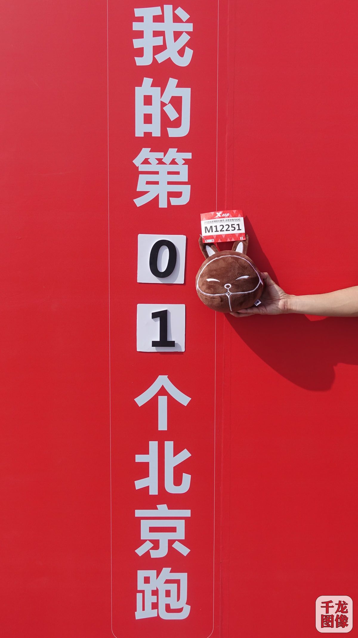 4月12日,北京国际长跑节·北京半程马拉松赛事组委会开始向跑者发放装备。“千龙兔爷”来到北京跑的装备发放点,现场体验参赛装备发放的全部过程。图为“千龙兔爷”在嘉年华互动区留影。千龙网记者 戚连民摄