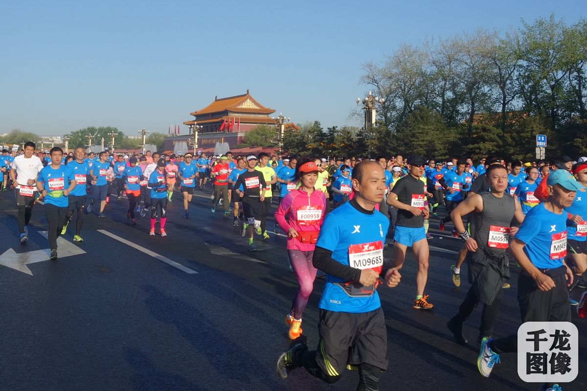 4月15日,2018北京国际长跑节·北京半程马拉松鸣枪。本次比赛设半程马拉松和家庭亲子跑两个项目,分别在天安门广场和奥林匹克公园中心区同时出发。图为跑友们跑在长安街上。千龙网记者 黄业摄