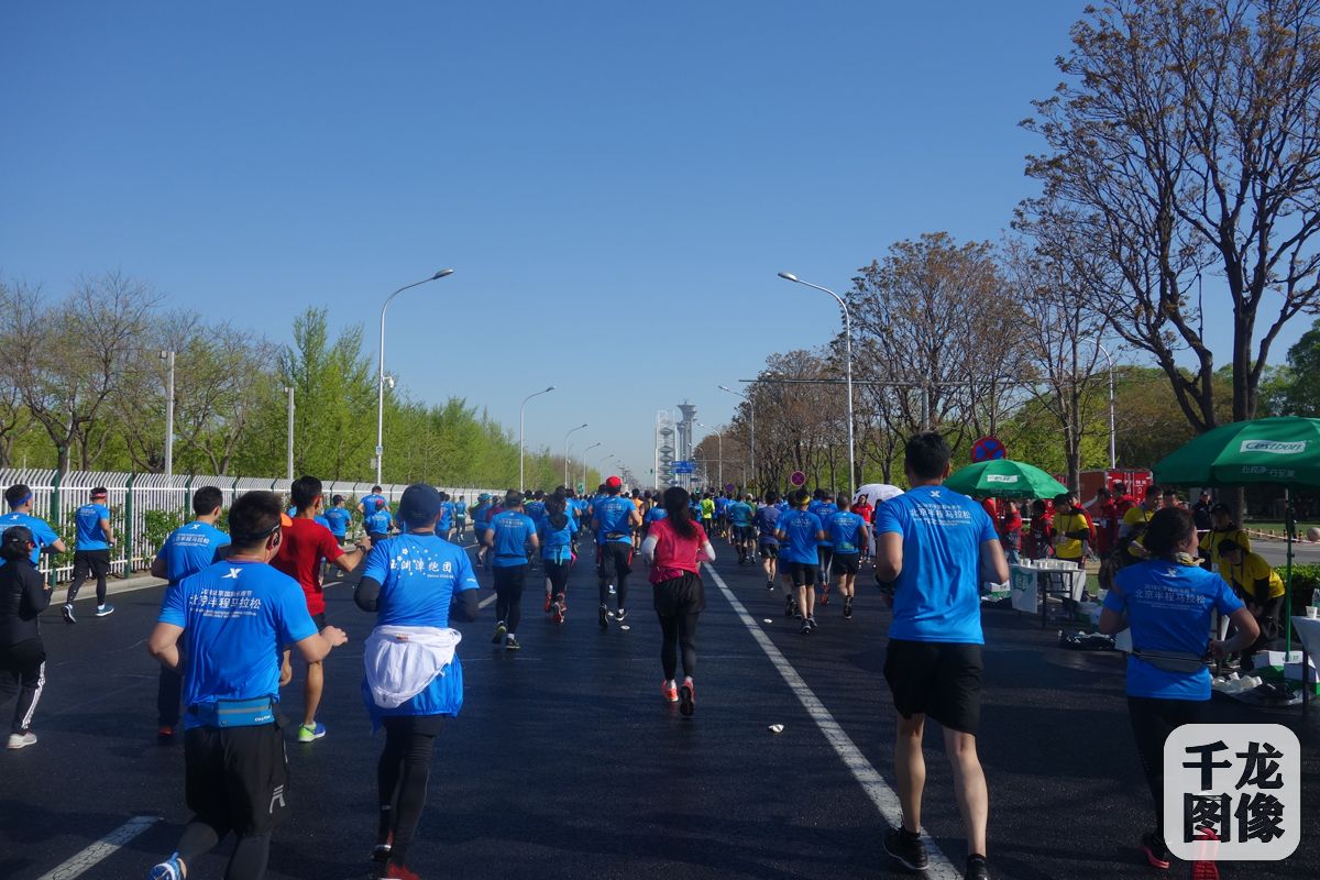 4月15日,2018北京国际长跑节·北京半程马拉松鸣枪。本次比赛设半程马拉松和家庭亲子跑两个项目,分别在天安门广场和奥林匹克公园中心区同时出发。图为跑友们向终点前进。千龙网记者 黄业摄