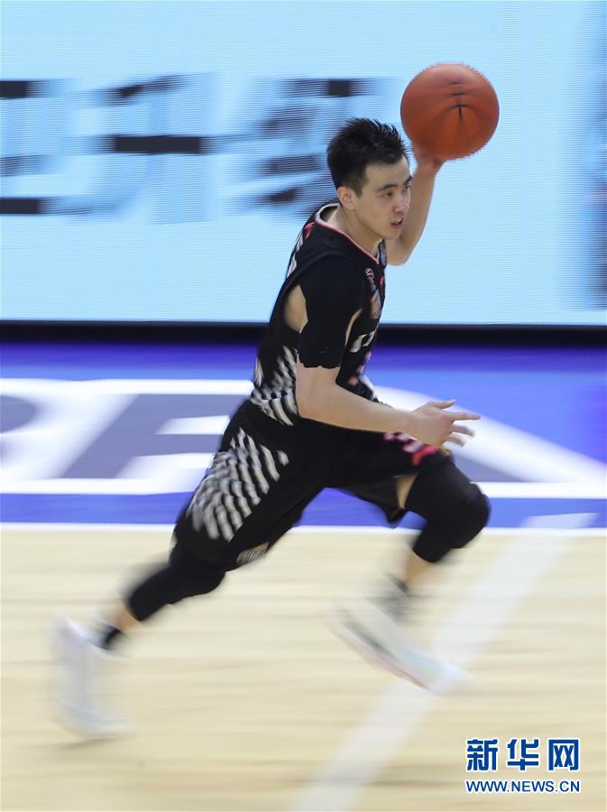 ↑4月15日,辽宁本钢队球员赵继伟在比赛中进攻。当日,在2017-2018赛季中国男子篮球职业联赛(CBA)总决赛第一场比赛中,辽宁本钢队客场以120比108战胜浙江广厦控股队。新华社记者徐子鉴摄