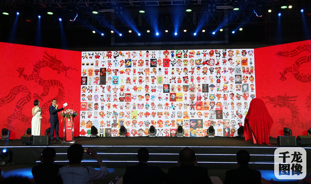 4月18日,2019年国际篮联篮球世界杯倒计时500天活动在京举行,赛事组委会在北京五棵松HI-PARK VIP篮球馆正式发布了本届比赛的吉祥物——身着篮球服、脚穿篮球鞋的龙形卡通人物“梦之子”。图为发布会现场。千龙网发 组委会供图