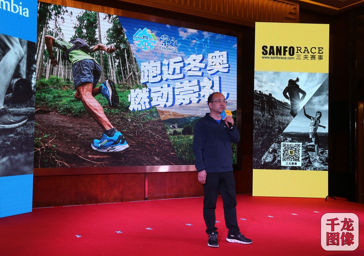 4月23日,Columbia崇礼168国际超级越野赛组委会在京召开新闻发布会,公布赛事组别设置,赛道安排并向媒体通报赛事的筹办进展。图为崇礼区体育局局长田永军致辞。千龙网记者 戚连民摄