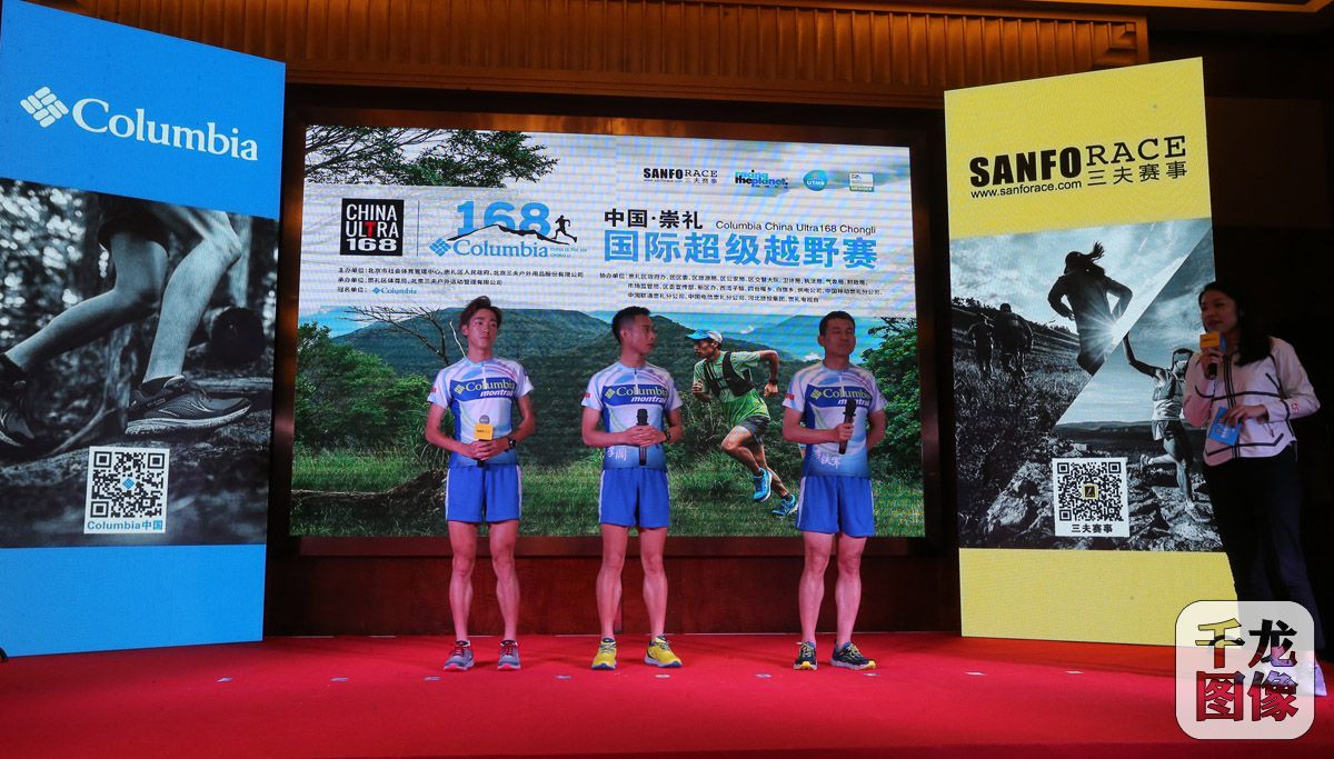 4月23日,Columbia崇礼168国际超级越野赛组委会在京召开新闻发布会,公布赛事组别设置,赛道安排并向媒体通报赛事的筹办进展。图为往届参赛选手介绍体会。千龙网记者 戚连民摄