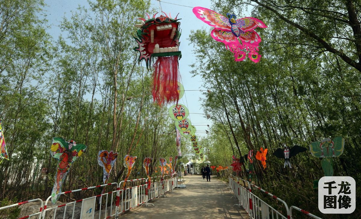 4月26日,2018年北京国际风筝节国际风筝邀请赛暨京津冀风筝联谊赛在北京园博园举行。图为活动现场的风筝展示。千龙网记者 戚连民摄