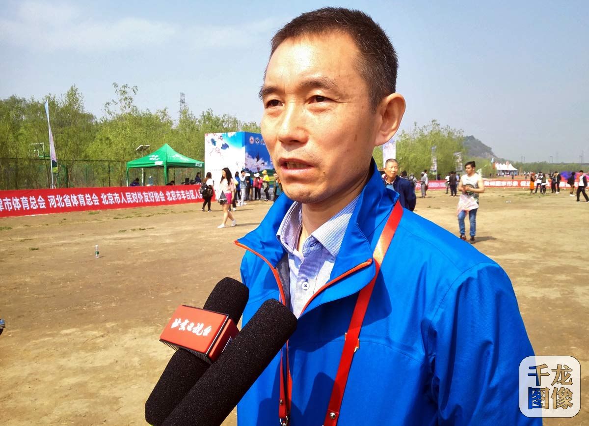 4月26日,2018年北京国际风筝节国际风筝邀请赛暨京津冀风筝联谊赛在北京园博园举行。图为北京市风筝协会秘书长张国成接受采访。千龙网记者 戚连民摄