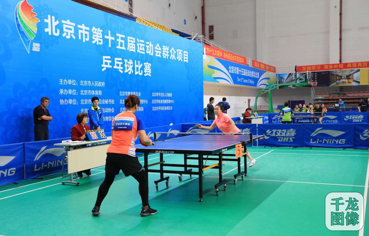 5月5日,北京市第十五届运动会群众乒乓球比赛5月5日在平谷体育中心举行,比赛为北京市第十五届运动会群众比赛拉开帷幕,也为第十五届市运会预热。图为比赛现场。千龙网发 主办方供图
