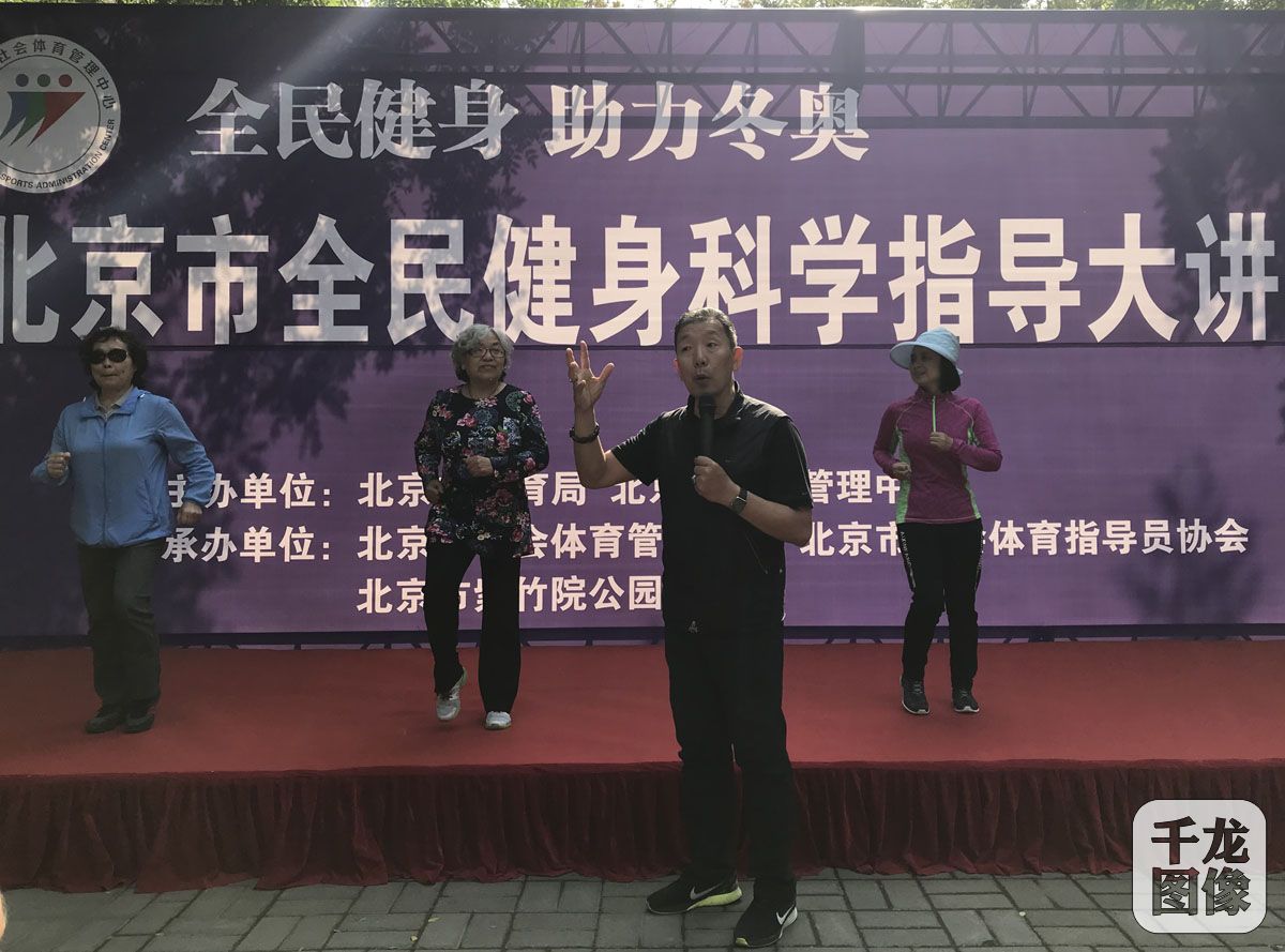 5月9日,北京市全民健身科学指导大讲堂活动在紫竹院北门小广场举行,特邀赵之心、徐爽两位专家从体医融合角度为大家带来科学健身讲座。图为活动现场。千龙网发 主办方供图