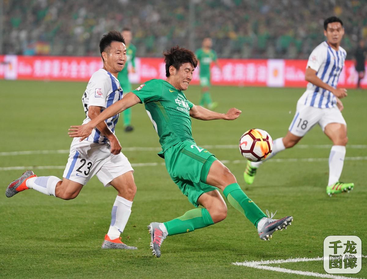5月11日,中超联赛第10轮北京中赫国安队主场迎战广州富力,经过90分钟的激战,双方战成2比2平,北京国安也错失在先赛一场的情况下升至积分榜榜首的机会。图为本场比赛精彩瞬间。千龙网记者 戚连民摄