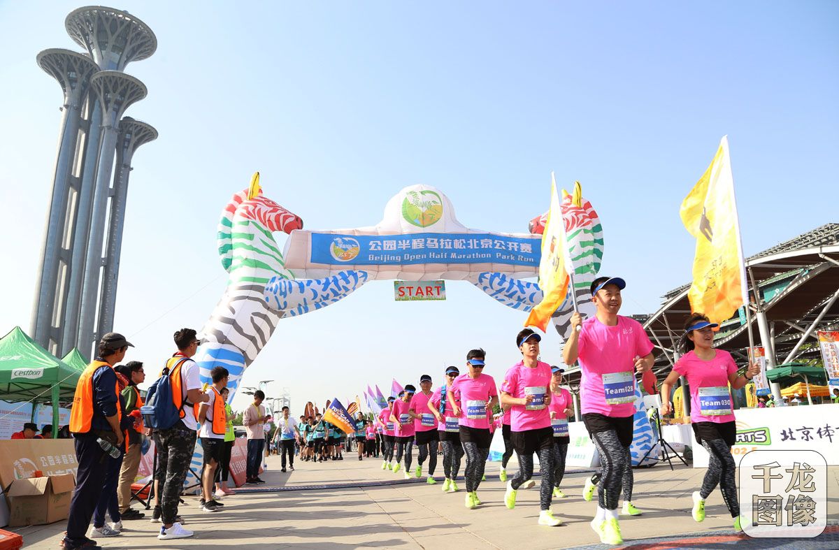 5月13日,建侬体育5K团队跑在奥林匹克森林公园鸣笛起跑,8支跑团参加本次5K团队跑,首都媒体徒步联队荣获本次团队跑第二名。图为首都媒体徒步联队在比赛中。千龙网发 首都媒体徒步联队供图