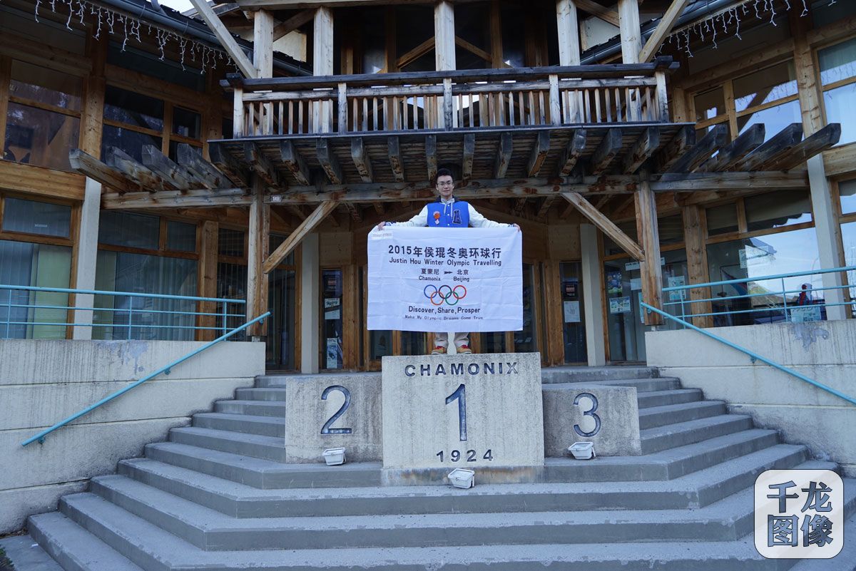 侯琨计划在2018年6月1号前,完成对全部45个奥运城市的访问,向着成为世界奥林匹克环球行第一人迈进。图为他在1924年第一届冬奥会举办城市法国霞慕尼。千龙网发 侯琨供图