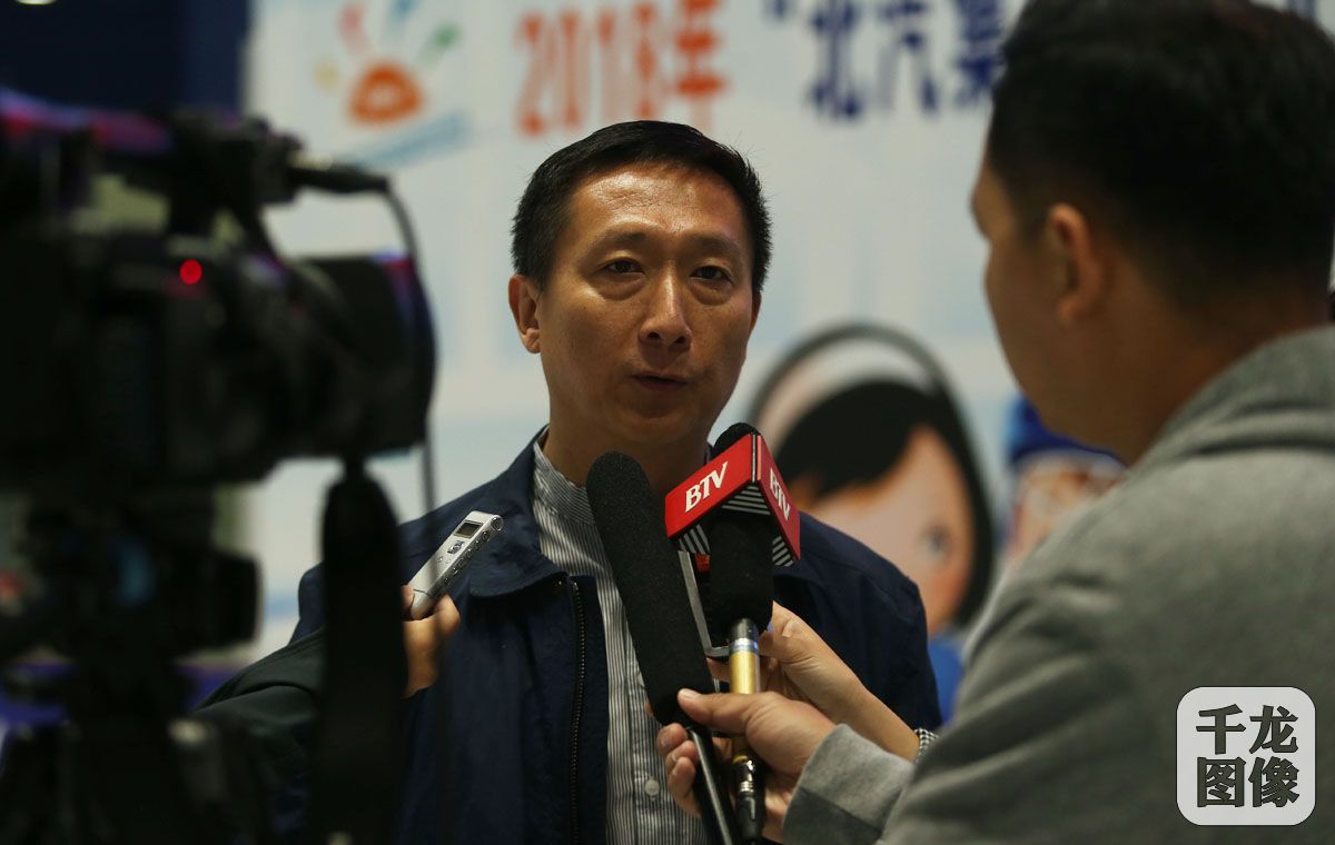 5月20日,2018年“北汽集团杯”北京市中小学生校际冰球联赛开幕,本届比赛将持续一个月,赛事规模已经是首届赛事的九倍。图为北京市体育局青少处处长苏峻接受记者采访。千龙网记者 戚连民摄