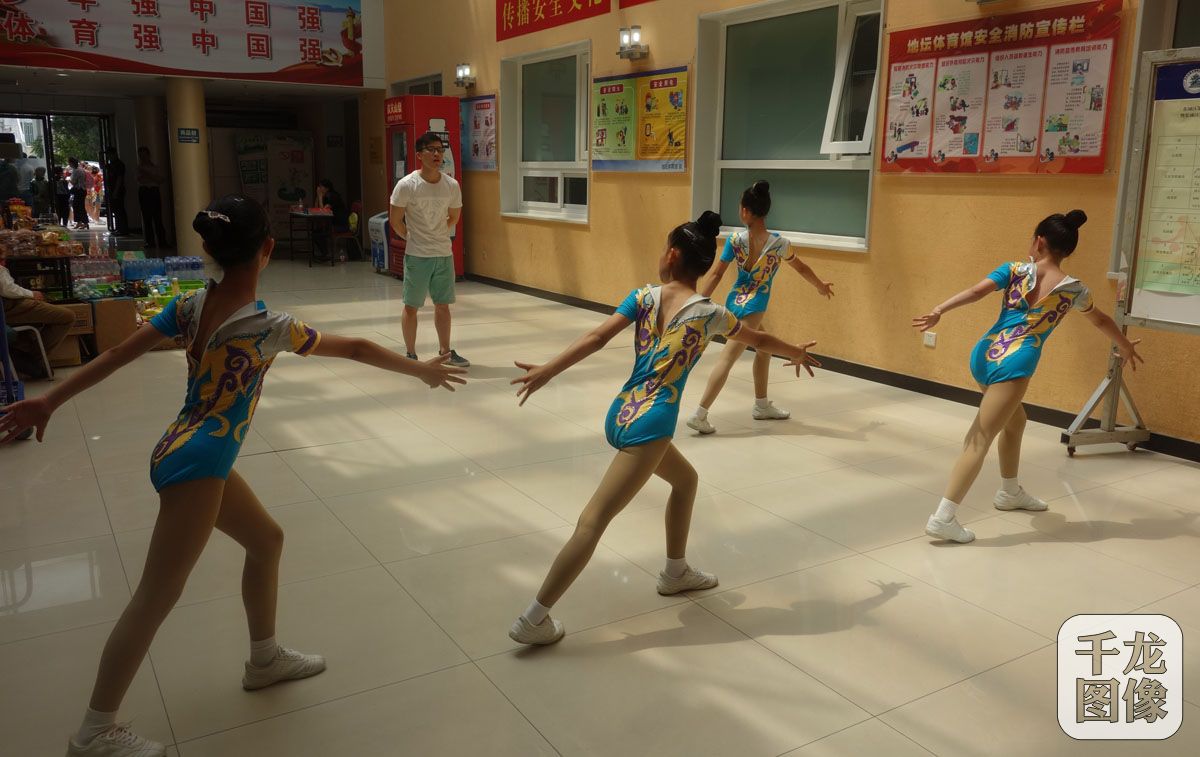 5月19日,第七届全国全民健身操舞大赛北京赛区暨第十届北京市体育大会健美操比赛在北京市地坛体育馆举行,来自全市14个区64支代表队800余人次爱好者们踊跃报名参加。图为参赛选手赛前热身。千龙网记者 戚连民摄