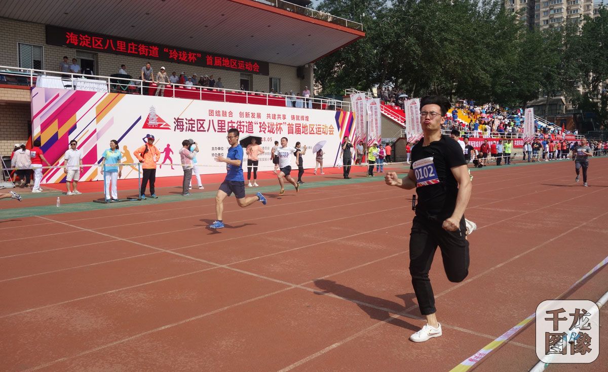 5月19日,以“团结融合 创新发展 共建共享 铸就辉煌”为主题的海淀区八里庄街道“玲珑杯”首届地区运动会在首都师范大学体育场举行。图为100米比赛现场。千龙网记者 戚连民摄