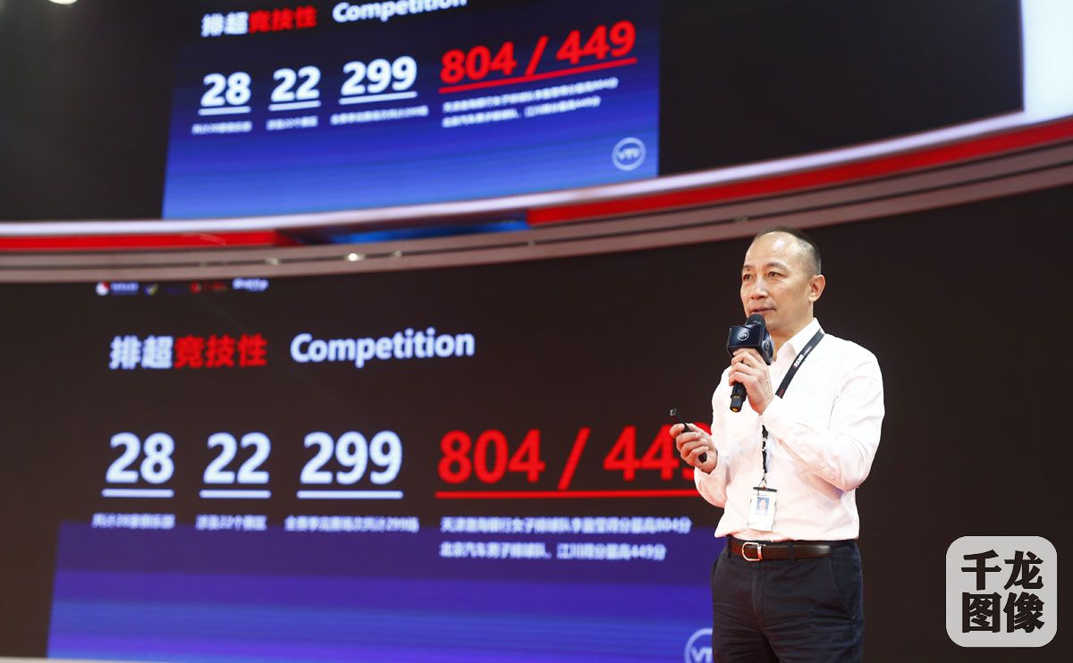 5月21日,“数说排超——2017-18中国排球超级联赛总结暨价值发布会”在京举行。图为体育之窗CEO高宏介绍排超元年的各项数据,用数说形式总结排超元年价值。千龙网记者 戚连民摄