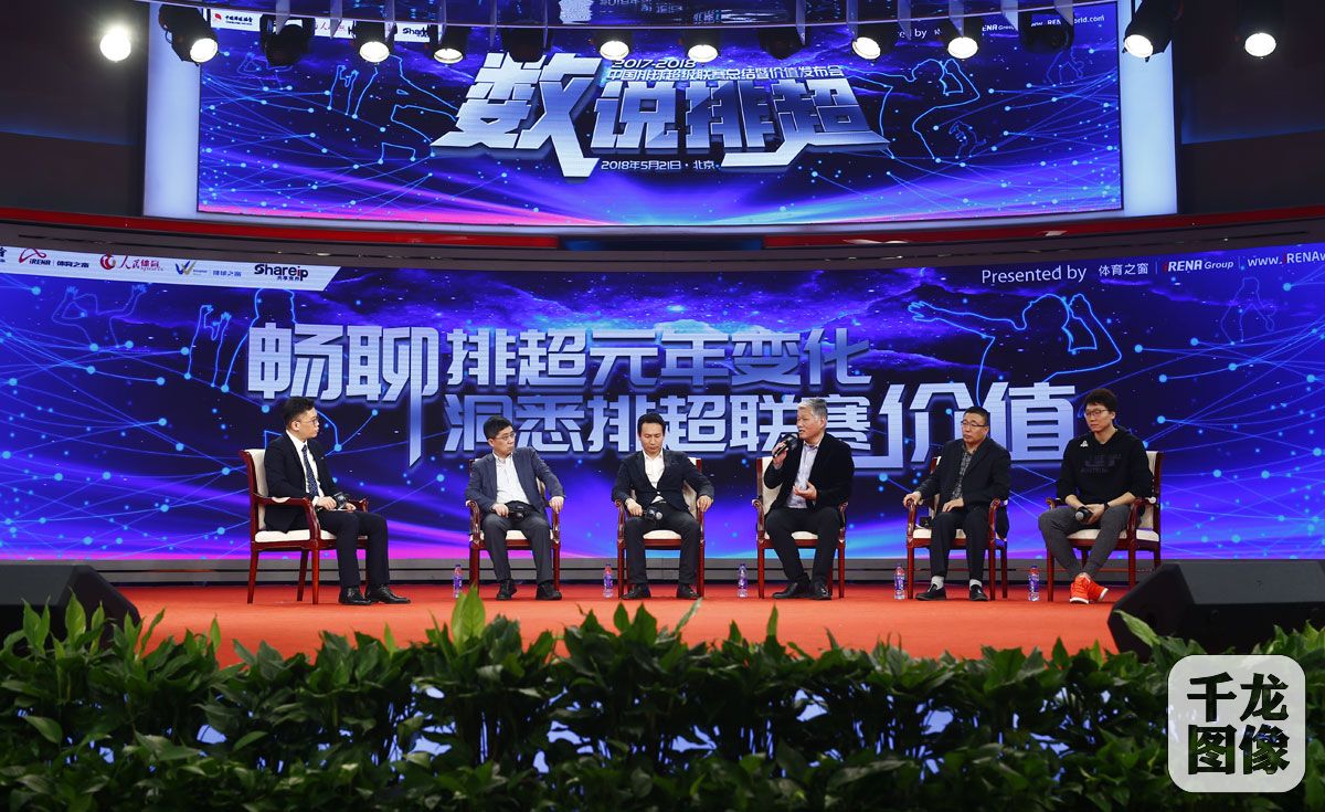5月21日,“数说排超——2017-18中国排球超级联赛总结暨价值发布会”在京举行。图为 新华社体育部主任许基仁(左二)、人民网体育频道主任、人民体育董事长朱凯(做三);体育之窗首席策略官谢骏(左四)、排球之窗总经理于溯韡(右二)、北汽男排队长单庆涛(右一)畅聊排超元年变化洞悉排超联赛价值 。千龙网记者 戚连民摄