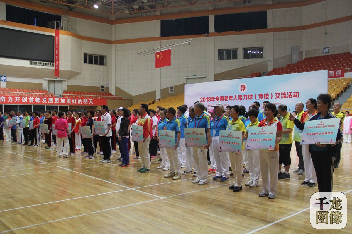 5月22日,2018年全国老年人柔力球(竞技)交流活动在北京市地坛体育馆举行。图为参加比赛的运动员在开幕式上。千龙网记者 黄业摄