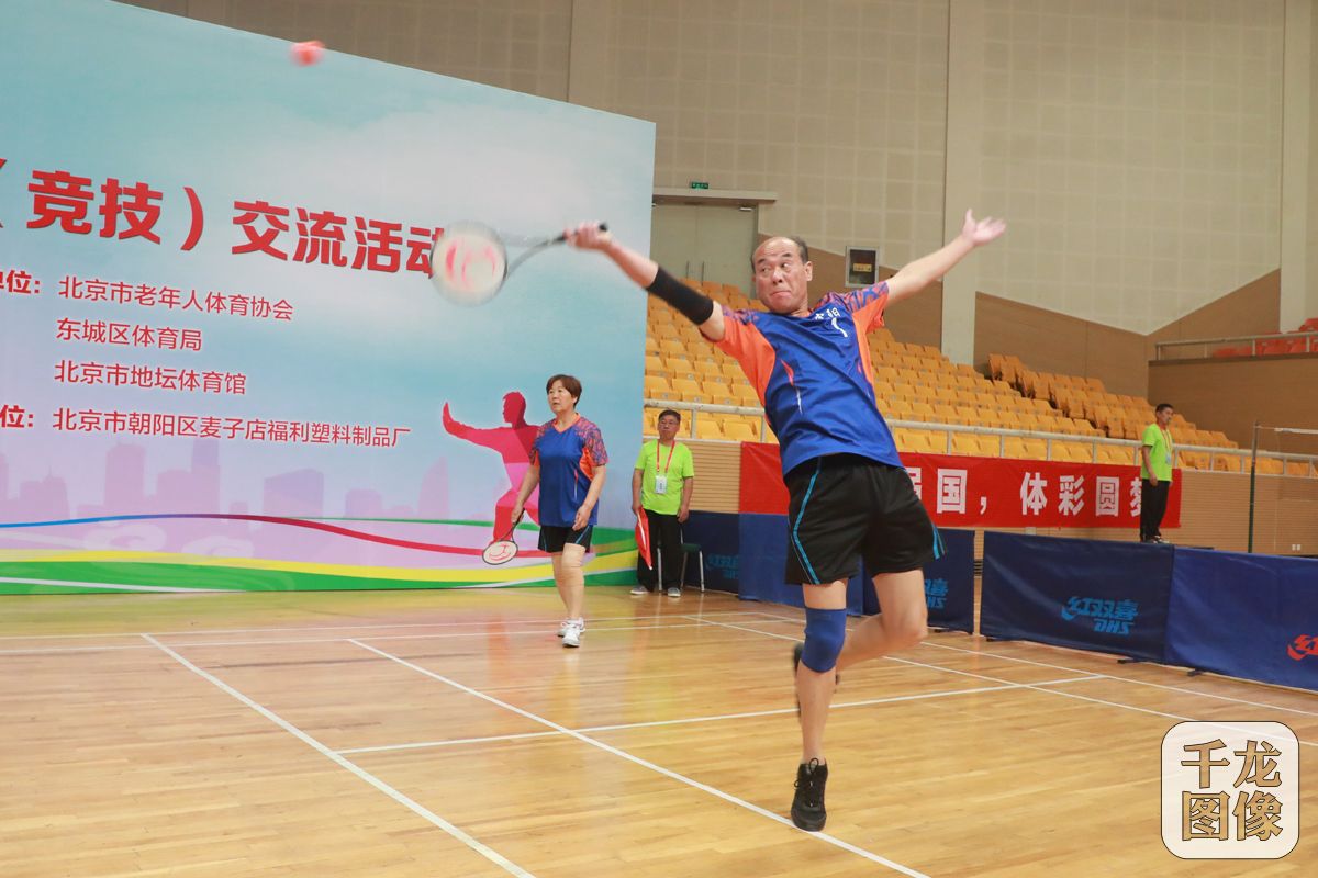 5月22日,2018年全国老年人柔力球(竞技)交流活动在北京市地坛体育馆举行。图为精彩比赛瞬间。千龙网发 主办方供图