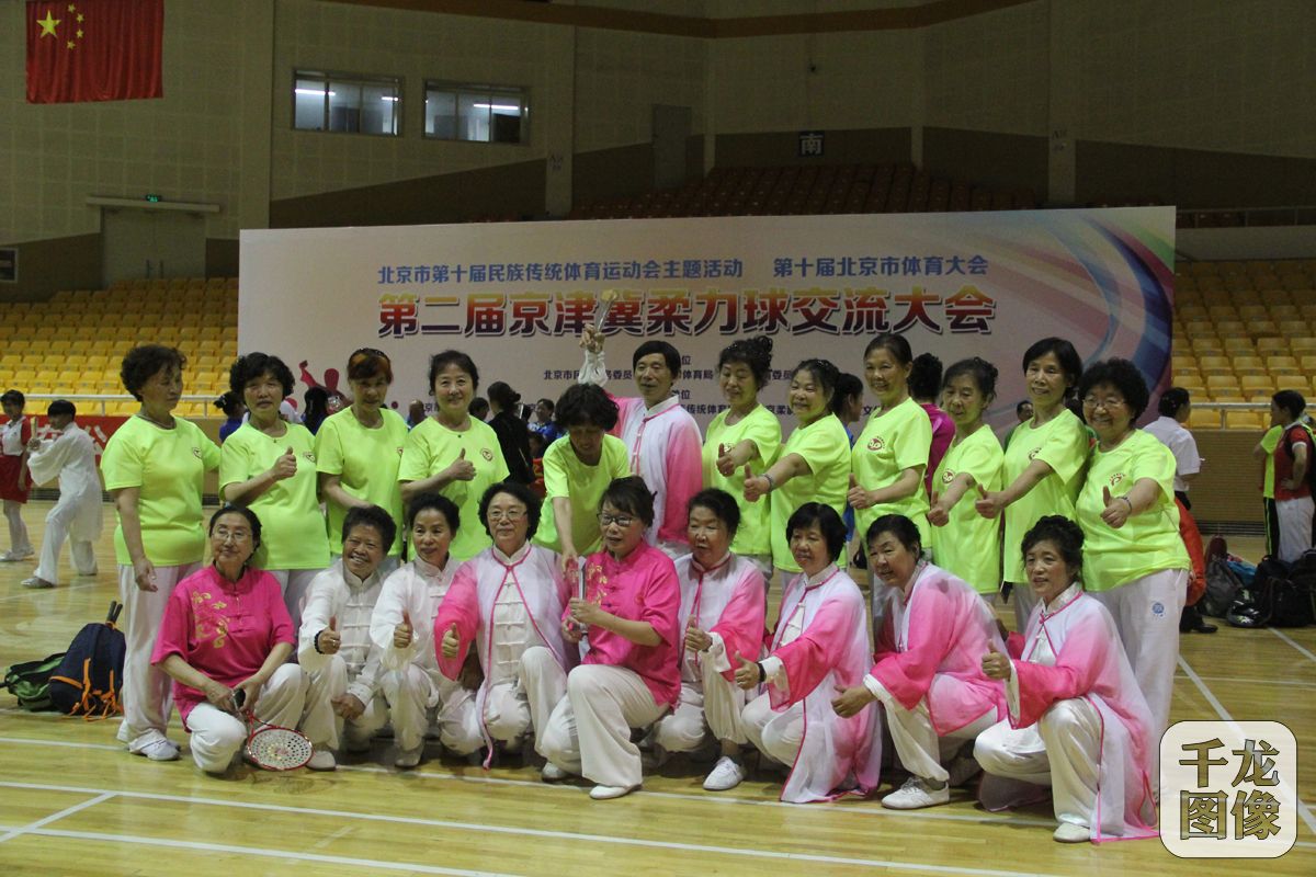 5月24日,第二届京津冀柔力球交流大会在北京地坛体育馆举行。图为赛后参赛选手合影留念。千龙网记者 黄业摄