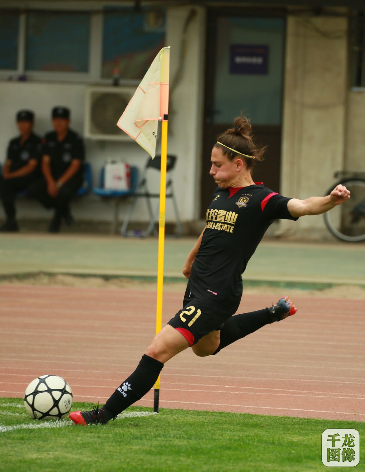 5月26日,中国足球协会女子足球超级联赛再战一场,北京北控置业队主场对阵来访的江苏苏宁女足。上半时,江苏队由外援前锋塔丽莎攻入一球,下半场,北京北控置业队由维罗妮卡和王妍雯连下两城,随后塔丽莎救主,经过90分钟比赛,双方战成2:2。图为本场比赛精彩瞬间。千龙网记者 戚连民摄